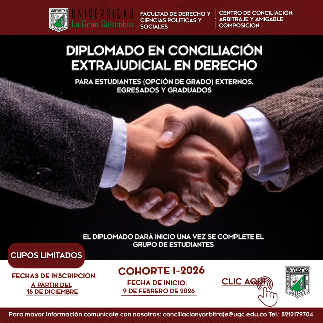 El Centro de Conciliación, Arbitraje y Amigable Composición es de naturaleza privada, promovido por la Universidad La Gran Colombia como elemento de proyección social, vigilado por el Ministerio de Justicia y del Derecho.